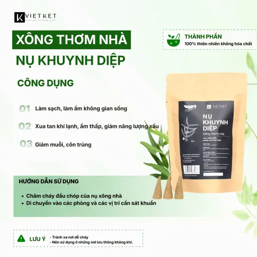 Nếu bạn đang tìm một sản phẩm xông nhà khuynh diệp thơm ấm - khử mùi nhanh - giảm ẩm mốc và tạo cảm giác thư giãn sảng khoái, thì Nhang Nụ Trầm Thảo Mộc Khuynh Diệp VIETKET 100g là lựa chọn rất đáng thử.