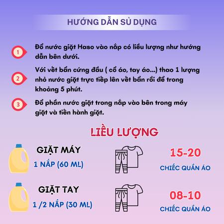 - Với công nghệ kháng khuẩn đặc biệt có trong Nước giặt HASO giúp khử mùi, ngăn chặn vi khuẩn và nấm mốc