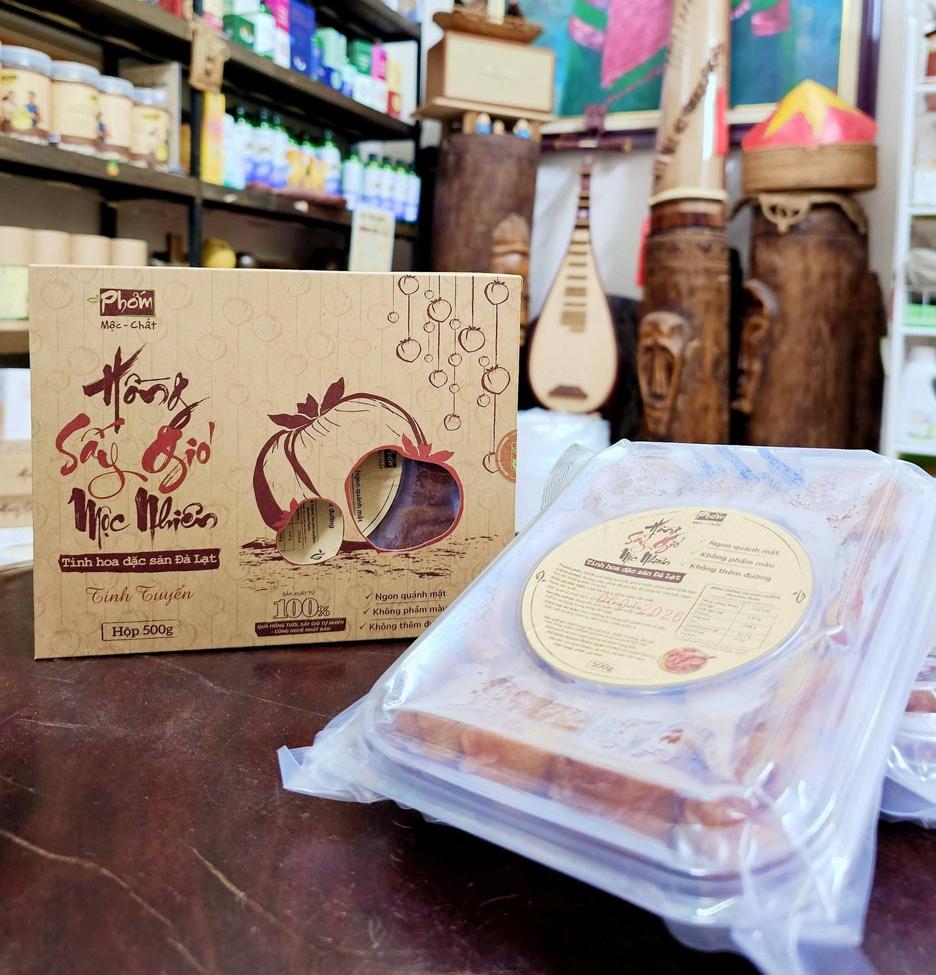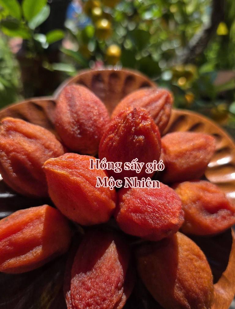 Hồng sấy gió Mộc Nhiên là tinh hoa đặc sản cao nguyên Đà Lạt, được làm từ những trái hồng già cây tuyển chọn kỹ lưỡng, treo gió và sấy chín tự nhiên bằng nắng và gió cao nguyên trong suốt 30 ngày.