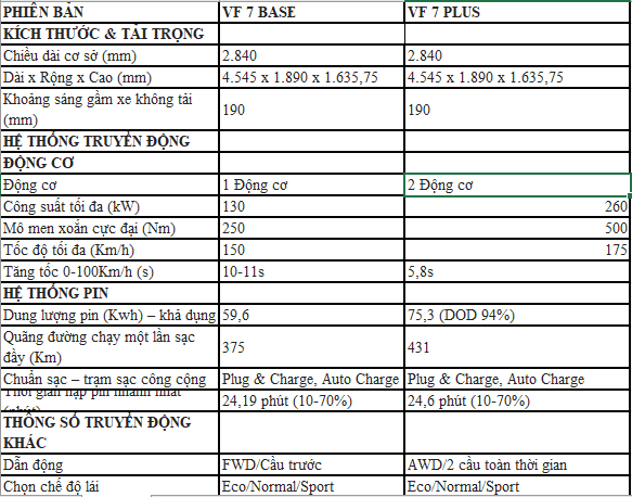 Ô TÔ ĐIỆN VINFAST VF7 Base, VF7 Plus