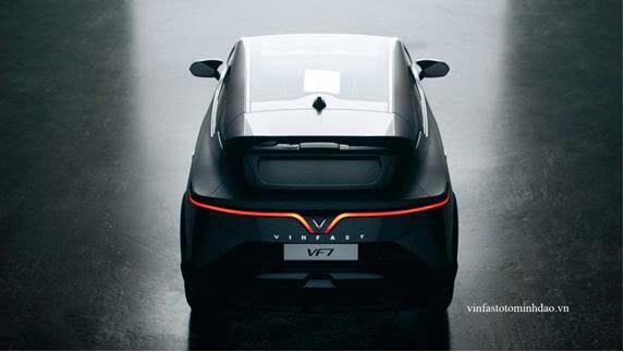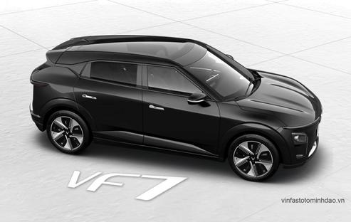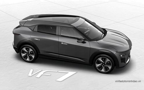 Đầu và đuôi xe được định vị nổi bật bởi dải đèn LED hình cánh chim đặc trưng của VinFast. Mui xe vuốt xuôi về phía sau kiểu coupe, cùng hốc bánh xe lớn, la-zăng hợp kim lên tới 20 inch, góp phần tạo nên vẻ đẹp mạnh mẽ và thể thao. VinFast VF 7 cũng toát lên sự cá tính và thời thượng nhờ các đường nét cắt xẻ mạnh ở hông xe. Tại vị trí này còn có tay nắm cửa dạng ẩn hiện đại, nhằm tối ưu tính khí động học. Bên dưới khu vực cột A sẽ là nơi đặt cổng sạc điện của mẫu xe này.