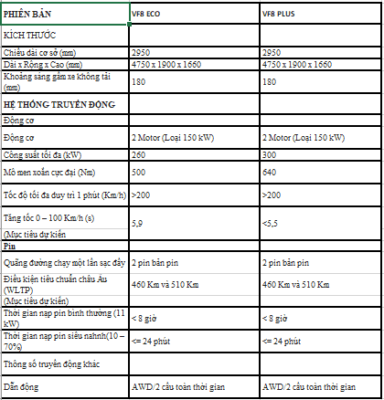 Ô TÔ ĐIỆN VINFAST VF8 Base, VF8 Plus