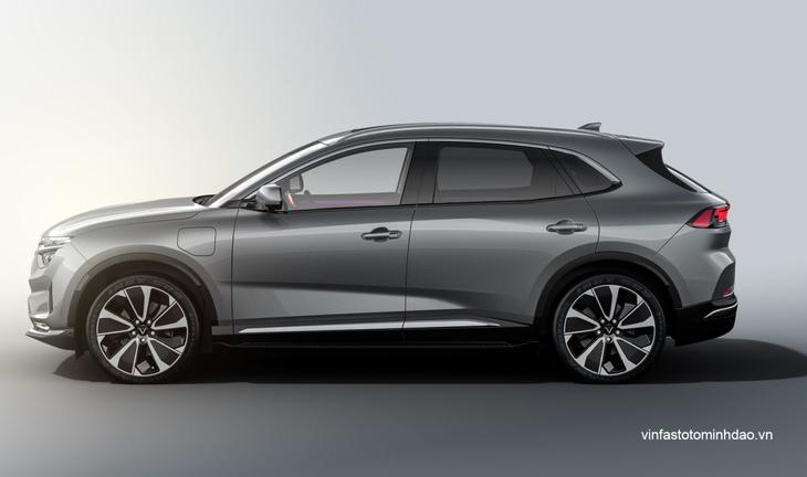 VinFast VF 8 có kích thước 4.750mmx1.900mmx1.660mm, tạo nên sự cân đối về ngoại hình, tối ưu cách bố trí các không gian xe đồng thời cho khả năng di chuyển linh hoạt hơn. Nhìn ngang xe tạo cảm giác trường dài với thiết kế các đường gân dập nổi tạo nên nét cứng cáp cho xe. Cụm dèn pha và đèn hậu được thiết kết vuốt về phía thân xe một phần, khi nhìn ngang ở phần thân xe tạo nên vẻ hài hòa liền mạch của tổng thể xe.