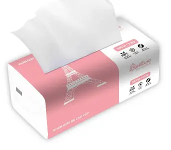 Rút từng tờ để sử dụng. Thiết kế rút liên tục giúp tờ tiếp theo tự động trồi lên, rất vệ sinh.