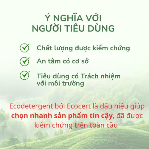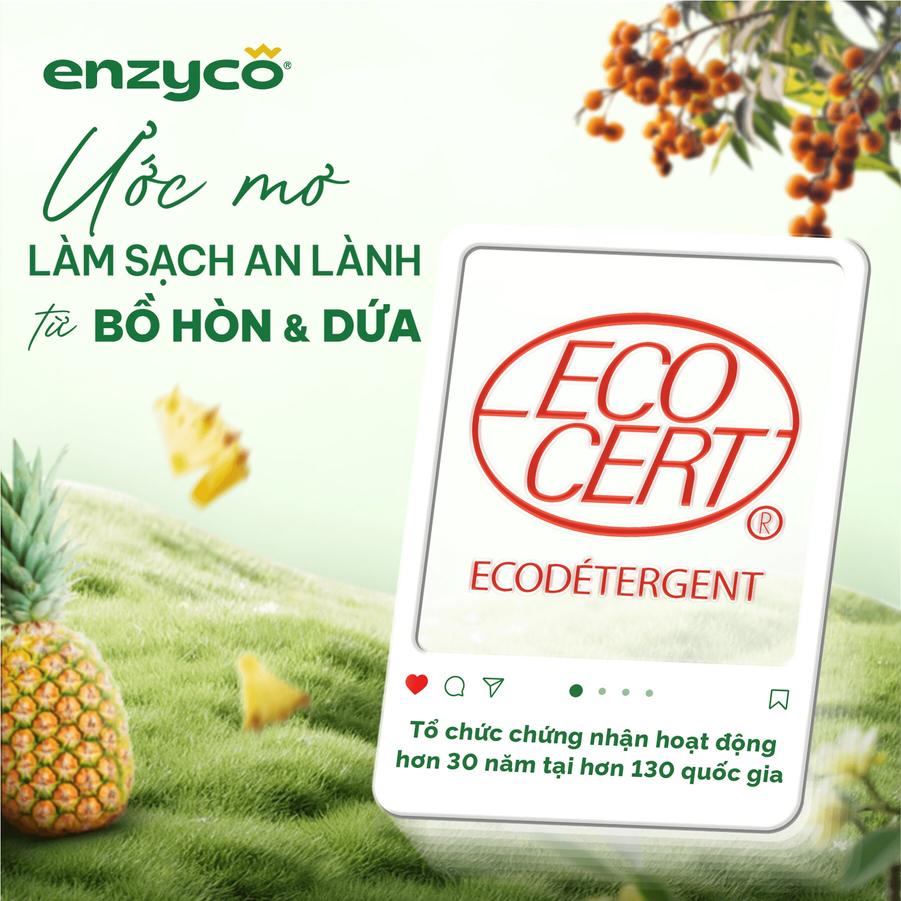 - Xanh từ gốc: Ecocert kiểm soát khắt khe từ nguyên liệu, quy trình sản xuất và khả năng tác động tới môi trường (Sản phẩm tẩy rửa Enzyco phân huỷ từ 96% - 97.7% chỉ sau 18 ngày - giảm tối đa tác động xấu tới hệ sinh thái)