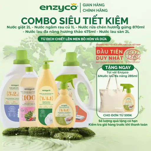 Combo Siêu Tiết Kiệm-Nước Rửa Bát 850ml,Lau Sàn 2L,Ngâm rau 1L,Nước giặt 2L,Lau đa năng 475ml ENZYCO