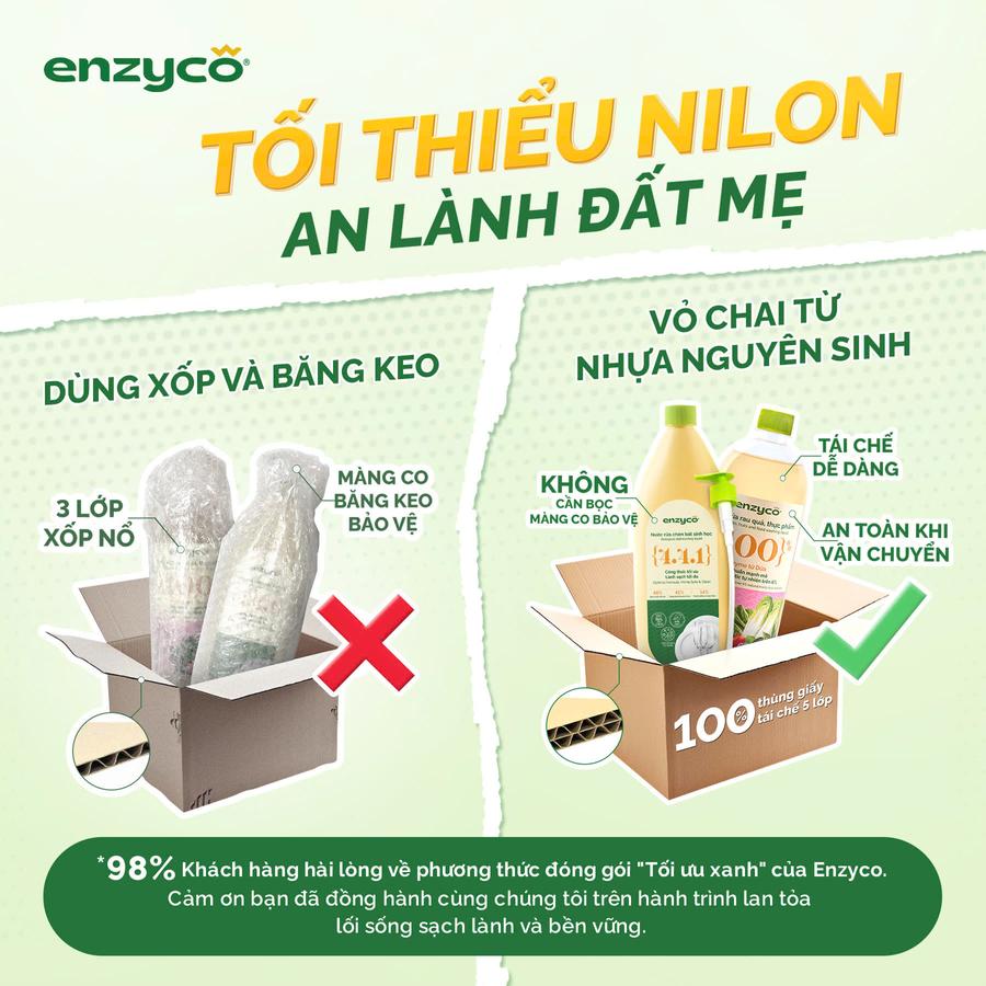 - Tối thiểu 95% thành phần có nguồn gốc tự nhiên(Các sản phẩm Enzyco chứa tới hơn 98% thành phần có nguồn gốc tự nhiên)