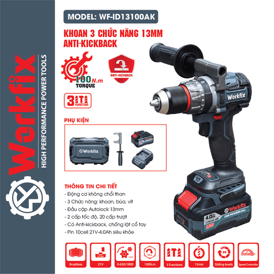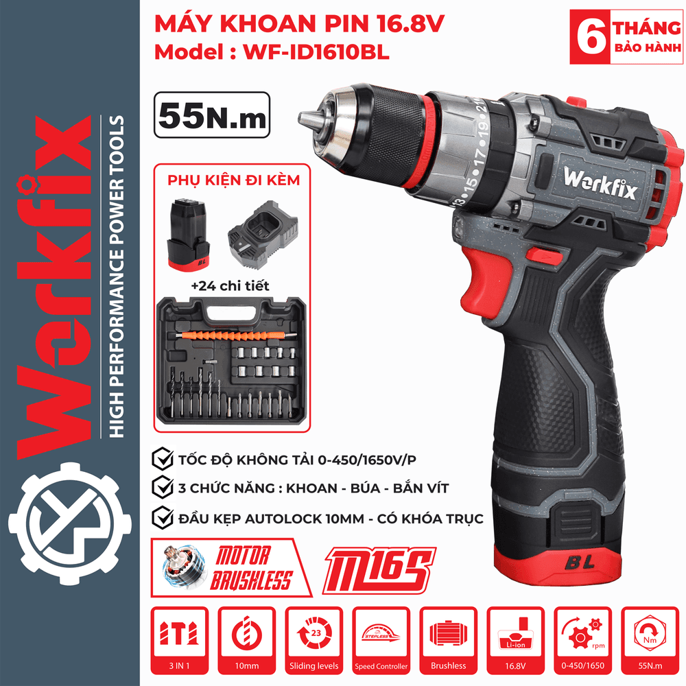 Máy khoan Workfix 10 ly WF ID1610 16,8v