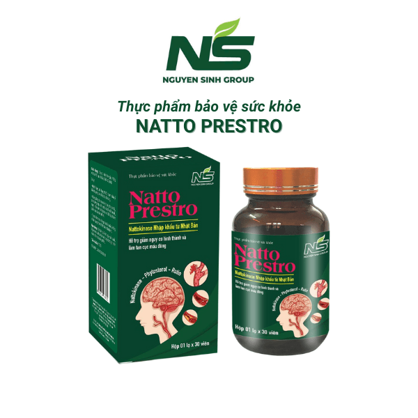 Hoạt chất phòng đột quỵ tai biến Natto Prestro Nguyên Sinh Group hỗ trợ làm tan cục máu đông (Hộp 30 viên)