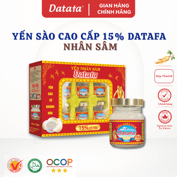 Yến Sào Nhân Sâm DATAFA 15% Tổ Yến – Hộp 6 Lọ 70ml - Yến Thật 100%, Không Chất Bảo Quản