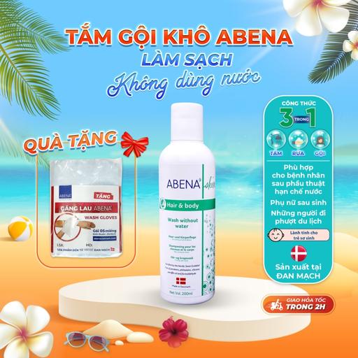 [Tặng kèm 5 găng lau] Dầu tắm gội khô ABENA tắm gội 2 in 1 (chai 200ml) - Nhập khẩu Đan Mạch