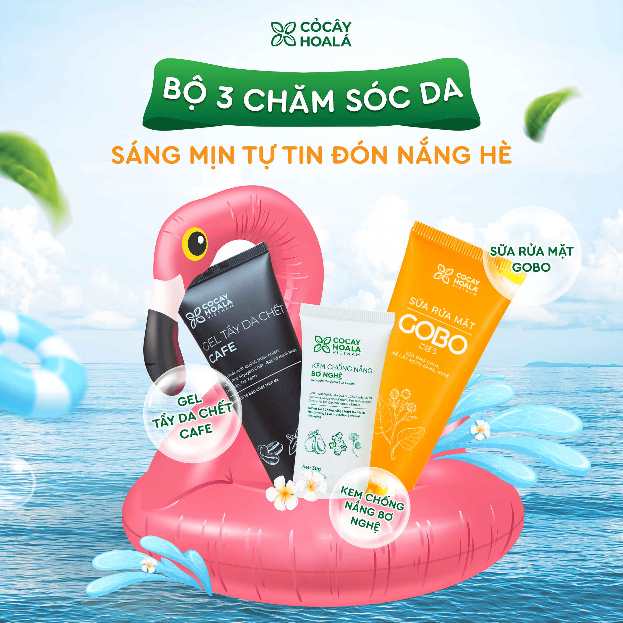 [Tặng Combo Đậu Đỏ mini trị giá 150,000] Combo Sản Phẩm Làm Đẹp: Sữa Rửa Mặt Gobo, Tẩy Da Chết Cà Phê, Kem Chống Nắng Bơ Nghệ