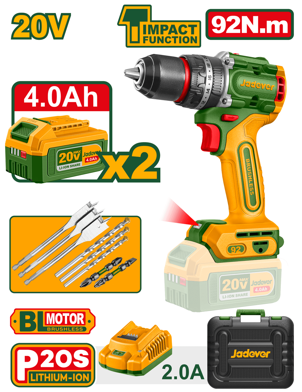 JADEVER - Máy khoan dùng pin Lithium-ion 20V - JDCDP511