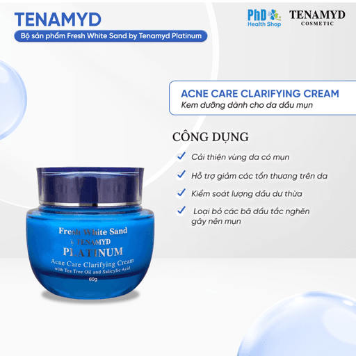 Kem dưỡng ẩm Tenamyd Platinum Acne Care Clarifying Cream 60g – Hỗ trợ giảm mụn, làm dịu & phục hồi da
