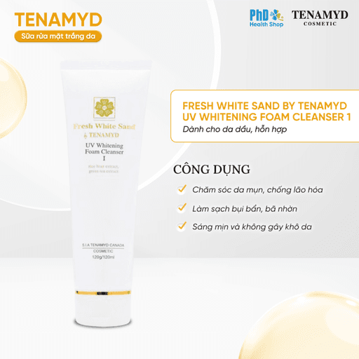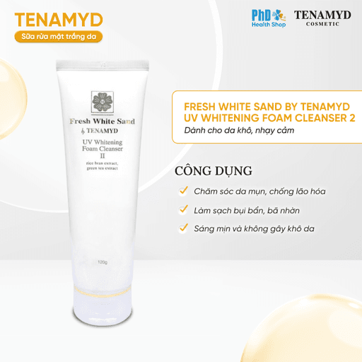 Sữa rửa mặt trắng da Tenamyd Fresh White Sand UV Whitening Foam Cleanser II 120g – Dành cho da khô & da nhạy cảm