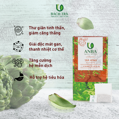 Trà Atiso Túi Lọc ANBA | Atiso Xanh Sấy Khô | Thanh Mát, Thơm Dịu, Giải Nhiệt | Hộp 20 Túi