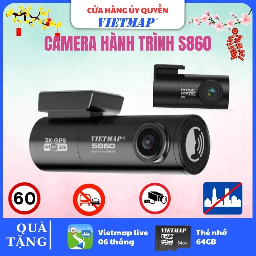 Camera Hành Trình Vietmap S860 Ghi Hình Kép 3K - Cảm Biến Sony Starvis 2, Cảnh Báo Giao Thông, Kết Nối Wi-Fi 5Ghz - Chính Hãng