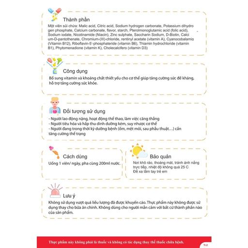 - Cách dùng và liều dùng: Ngày uống 1 viên hòa với 200 ml nước.