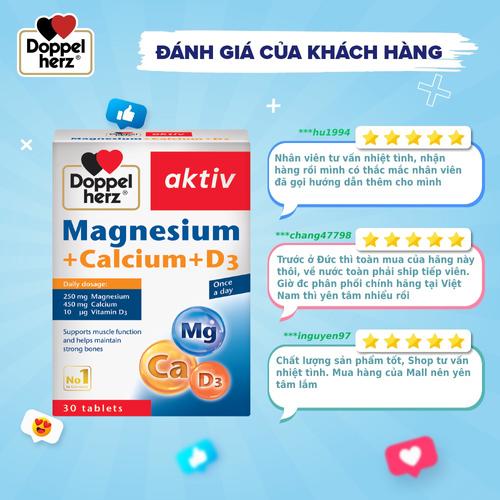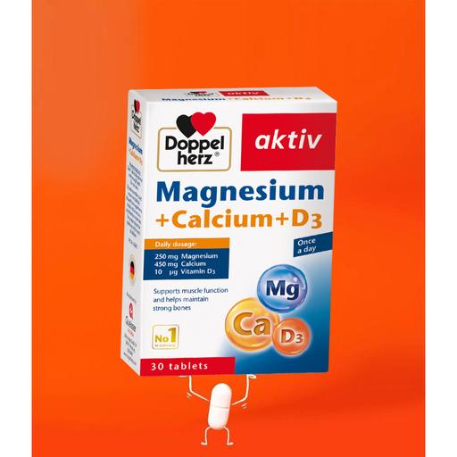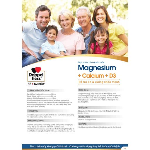 Viên uống bổ sung Canxi phòng ngừa loãng xương Doppelherz Magnesium + Calcium + D3 (Hộp 30 viên)