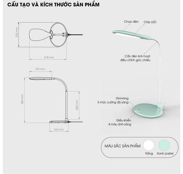 Công nghệ LED hiện đại: Ánh sáng trắng tự nhiên, không chứa tia UV, không nhấp nháy, giảm thiểu mỏi mắt, căng thẳng, bảo vệ thị lực hiệu quả.