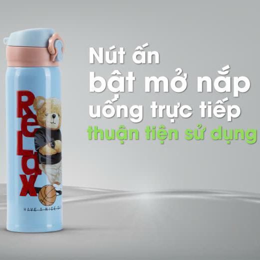 Nút ấn mở nắp: Thiết kế nút ấn độc đáo, giúp bạn dễ dàng mở nắp bình chỉ với một thao tác đơn giản. Không cần vặn nắp, bạn có thể thưởng thức đồ uống một cách nhanh chóng và tiện lợi.