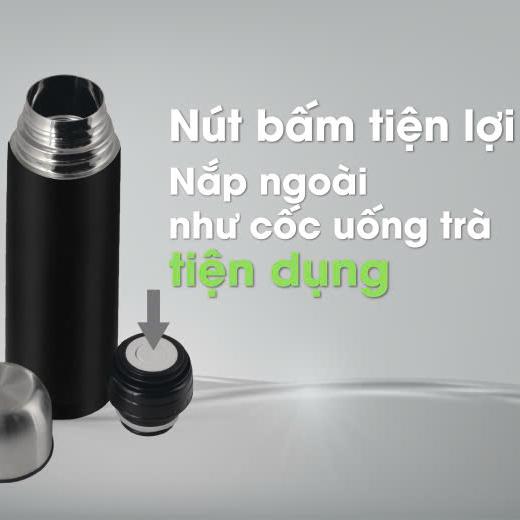 Nút bấm tiện lợi: Thiết kế nút bấm thông minh giúp bạn dễ dàng rót nước mà không cần vặn nắp, mang đến sự thuận tiện tối ưu cho cuộc sống bận rộn.