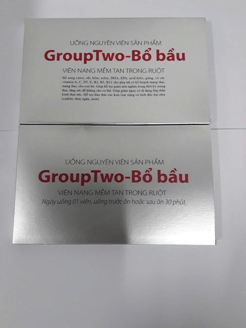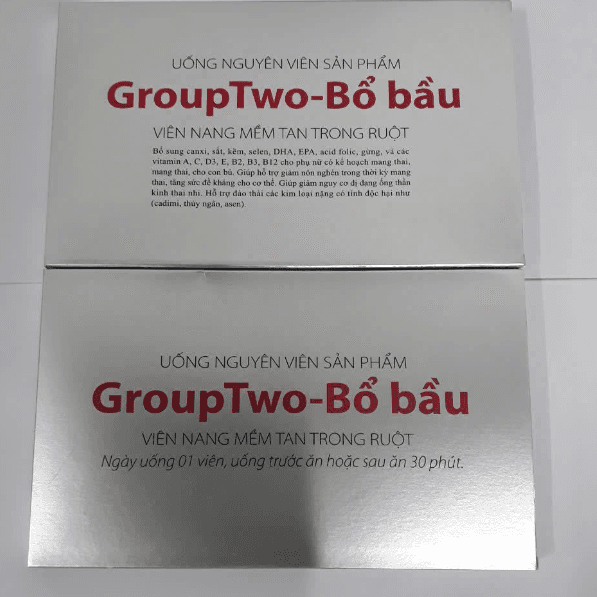 GroupTwo được bào chế dưới dạng viên nang mềm, dễ uống, tiện lợi cho mẹ bầu sử dụng. Sản phẩm được sản xuất trên dây chuyền hiện đại, đạt tiêu chuẩn GMP, đảm bảo an toàn và hiệu quả cho sức khỏe.