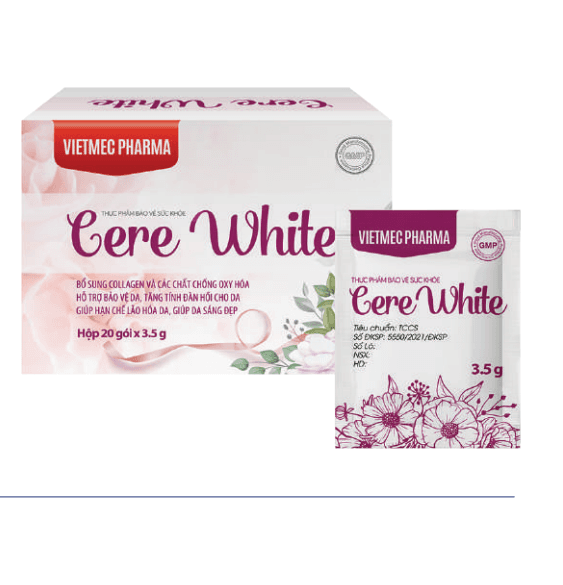 CERE WHITE là sản phẩm dinh dưỡng hỗ trợ làm đẹp da, được nghiên cứu và sản xuất dựa trên công thức độc đáo kết hợp các thành phần tự nhiên quý giá.