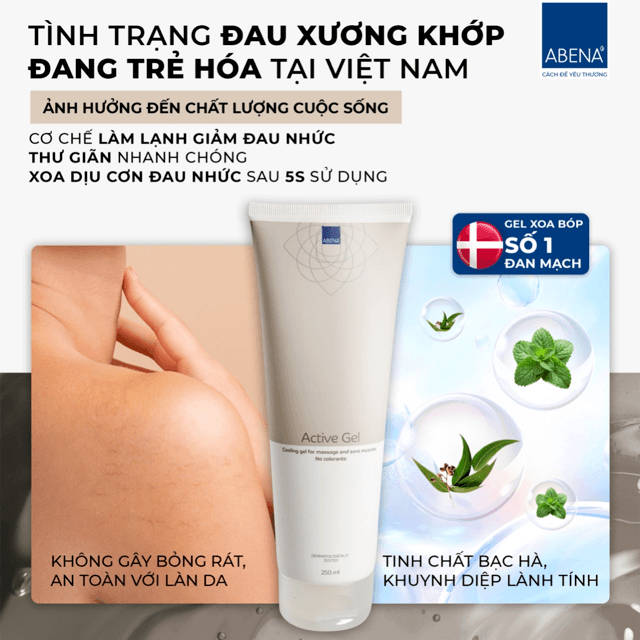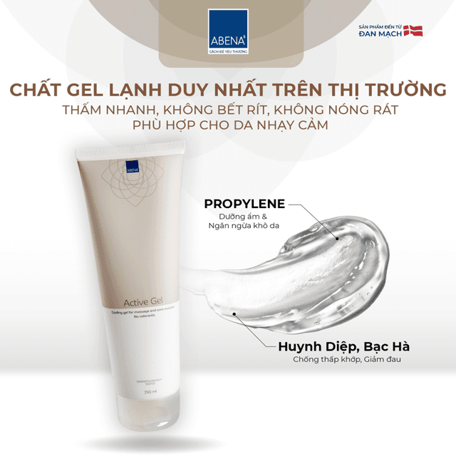 Gel xoa bóp lạnh giảm đau cơ Abena Active Gel (tuýp 250ml) - Nhập Khẩu Đan Mạch