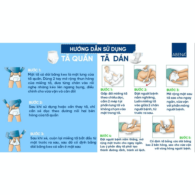 Lưu ý: Để dễ dàng thao tác khi mặc và thay tã dán, hãy trở người bệnh nằm nghiêng.