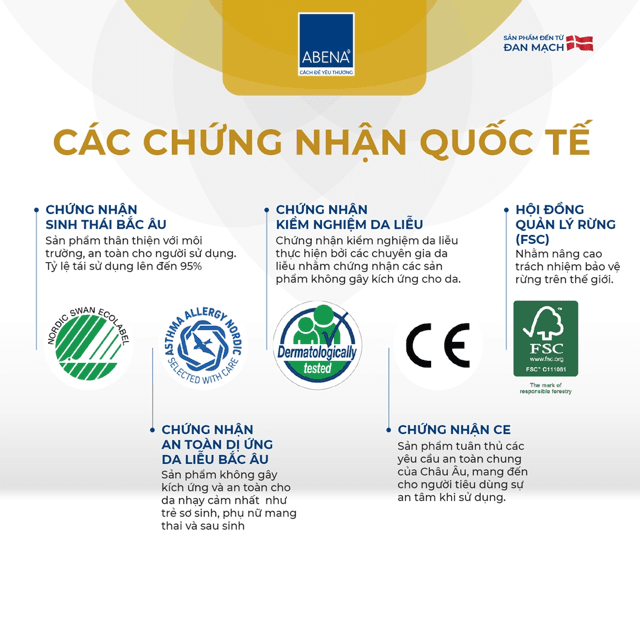 Abena là tập đoàn sản xuất sản phẩm chăm sóc sức khỏe hàng đầu đến từ Đan Mạch. Thành lập từ năm 1953, trải qua một giai đoạn hình thành và phát triển, Abena đã chinh phục được các thị trường khó tính Bắc Âu bằng chất lượng sản phẩm cũng như trách nhiệm xã hội của mình. Hầu hết các sản phẩm của công ty đều qua kiểm nghiệm lâm sàng của các chuyên gia da liễu và nhận được các chứng nhận y tế nghiêm ngặt của thị trường Bắc u như: Nordic Eco-Label, Asthma Allegry Nordic,...