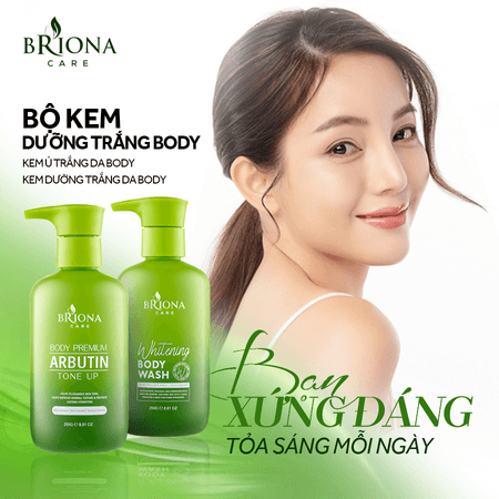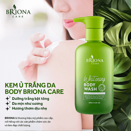 Briona Care Whitening Body Cream là dòng kem ủ trắng cao cấp, kết hợp Niacinamide, Alpha Arbutin, Vitamin C, Collagen và chiết xuất thiên nhiên, giúp nâng tông da rõ rệt chỉ sau 3 tuần, đồng thời dưỡng ẩm, làm mềm mịn và bảo vệ làn da khỏi tác nhân môi trường.