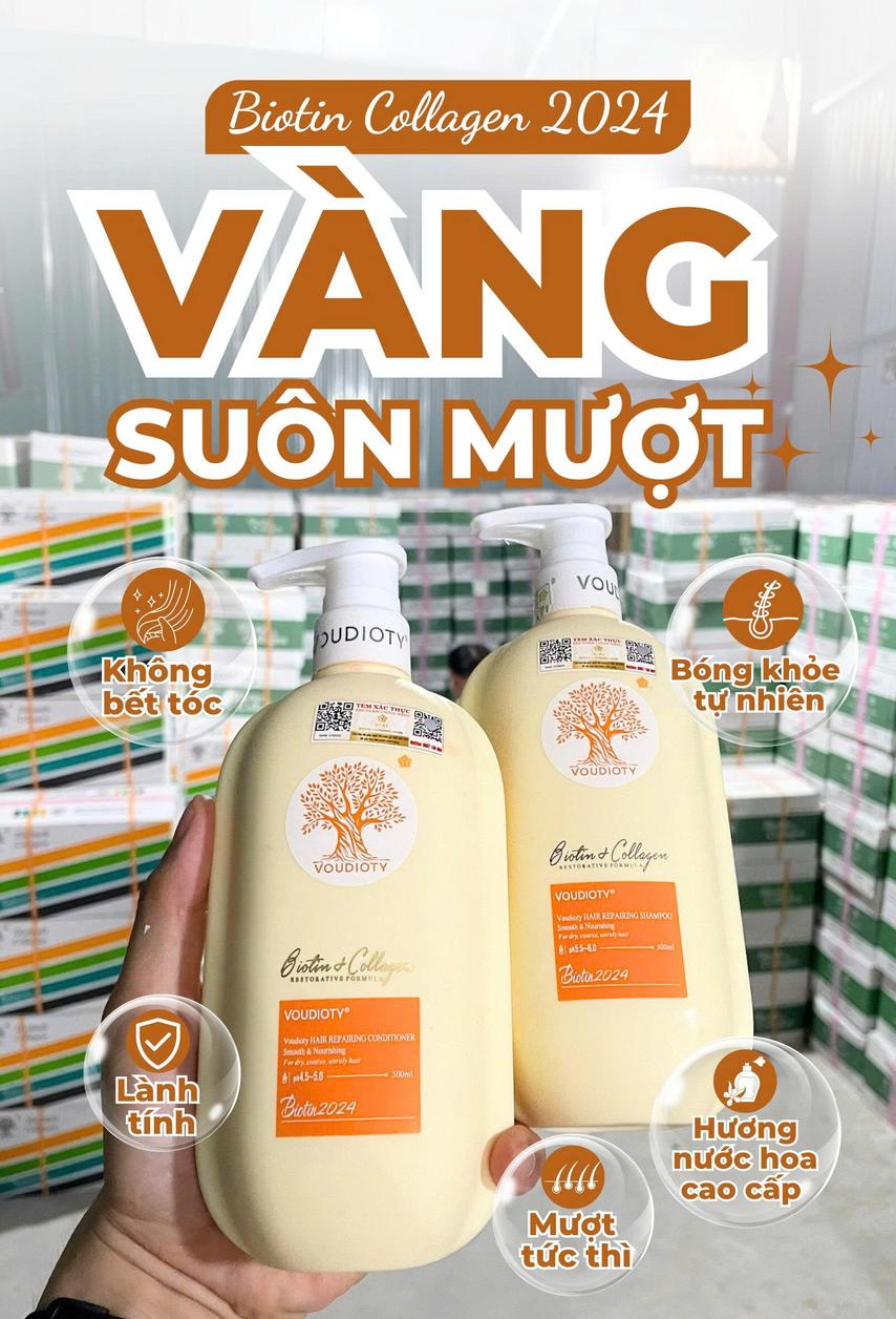 Cặp Gội Xả BIOTIN COLLAGEN VOUDIOTY 2024 500ml | 1000ml