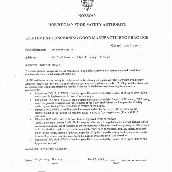 - Nhà sản xuất: Pharmatech AS, Na Uy. Địa chỉ: Vallehellene 4, 1664 Rolvsøy, Na Uy