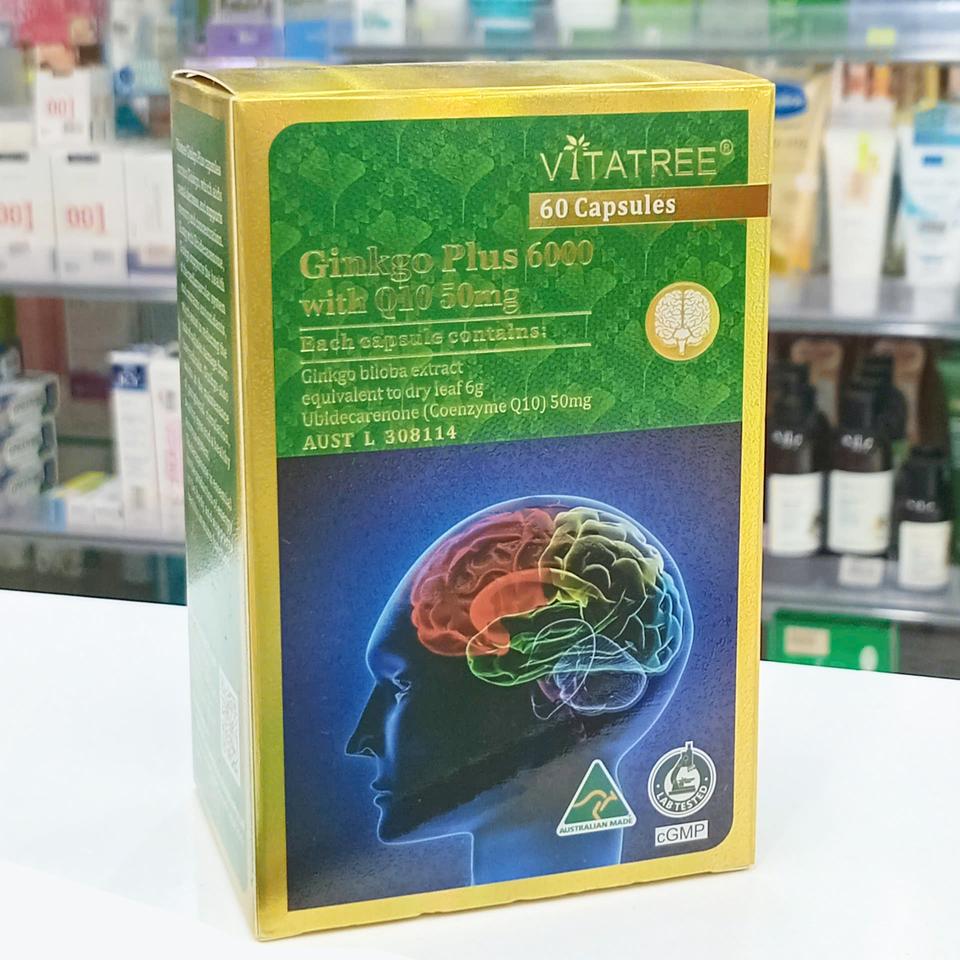 Viên uống bổ não tăng tuần hoàn máu Vitatree Ginkgo Plus 6000mg lọ 60 viên – Hỗ trợ trí nhớ, cải thiện tuần hoàn não và giảm thiểu nguy cơ tai biến nhẹ từ Úc