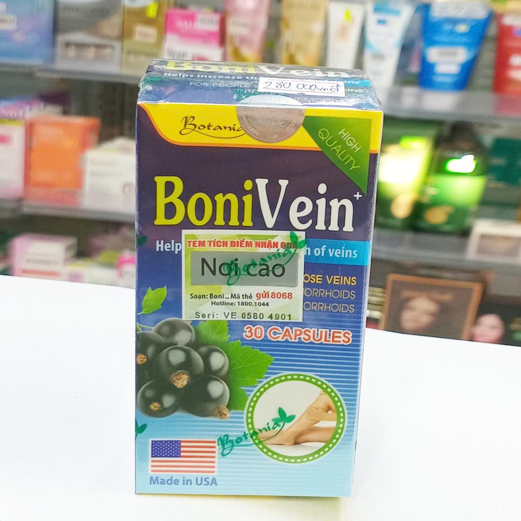 Boni Vein (Lọ/30viên) là thực phẩm chức năng cao cấp xuất xứ từ Mỹ, do công ty Botania sản xuất, giúp tăng cường sức khỏe tĩnh mạch, giảm triệu chứng suy giãn tĩnh mạch và cải thiện tuần hoàn máu một cách hiệu quả.