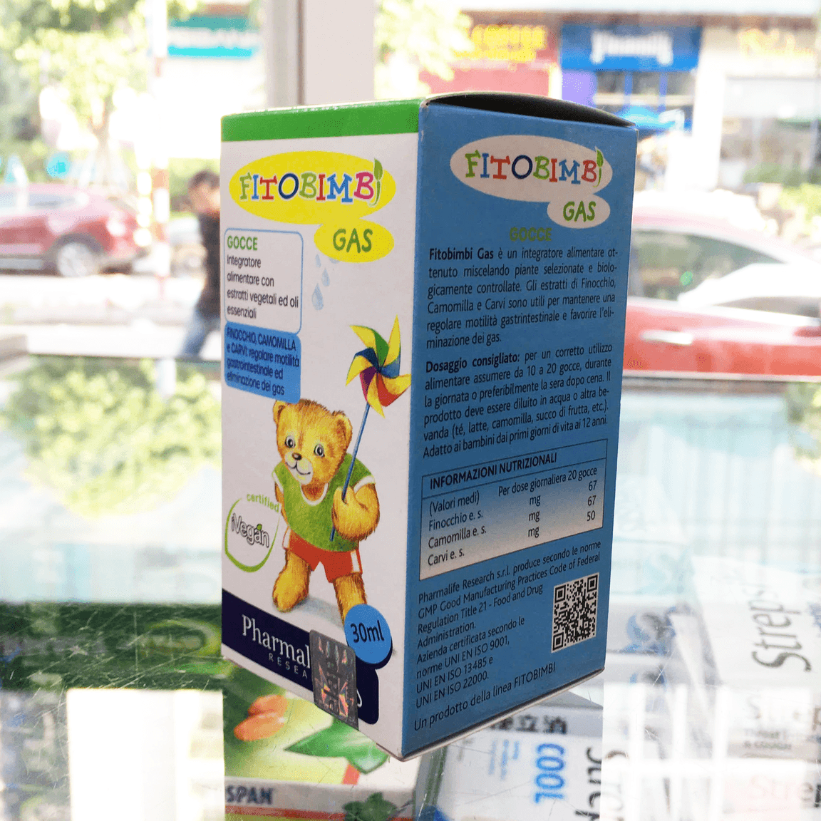 Fitobimbi Gas (chai 30ml) là thực phẩm bảo vệ sức khỏe đến từ Ý, được sản xuất bởi công ty Pharmalife Research Srl – thương hiệu nổi tiếng chuyên nghiên cứu và phát triển các dòng sản phẩm chăm sóc sức khỏe trẻ em đạt tiêu chuẩn GMP. Sản phẩm là sự kết hợp giữa các chiết xuất thực vật như thì là, hoa cúc, carvi giúp hỗ trợ tiêu hóa, làm dịu hệ tiêu hóa non yếu của trẻ, giảm chướng bụng, đầy hơi, rối loạn tiêu hóa. Sản phẩm phù hợp cho trẻ sơ sinh và trẻ nhỏ từ 0 đến 12 tuổi.