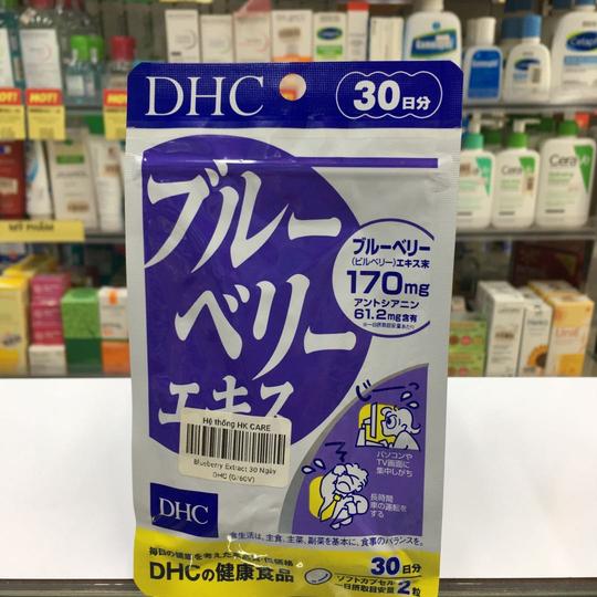 Viên uống bổ mắt DHC Blueberry Extract, xuất xứ Nhật Bản, sản xuất bởi DHC Corporation, hỗ trợ tăng cường thị lực, bảo vệ mắt khỏi tác hại của ánh sáng xanh, giảm mỏi mắt, cải thiện tuần hoàn máu mắt, đồng thời hỗ trợ sức khỏe mắt toàn diện cho người lớn và người làm việc với máy tính nhiều giờ.