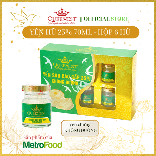 YẾN QUEENNEST 25% - 70ML KHÔNG ĐƯỜNG (hộp 6 hũ))
