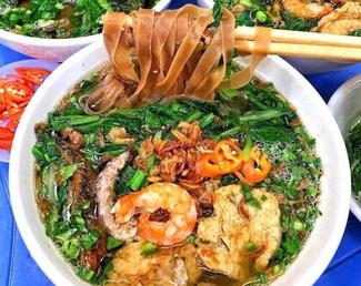 Thành phần: Bánh đa, hàu, mực, tôm, bề bề,...