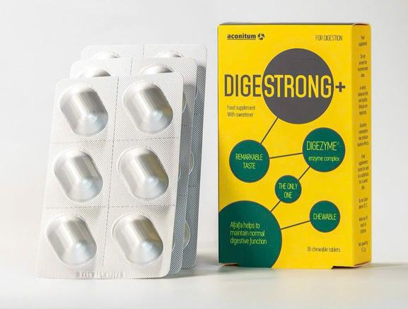Sản phẩm Digestrong+ là men tiêu hóa dạng viên nhai có nguồn gốc từ thực vật. Digestrong+ giúp cho cơ thể tiêu hóa và hấp thụ chất dinh dưỡng tốt hơn. Sản phẩm đặc biệt phù hợp với những người đang gặp tình trạng thiếu hụt men tiêu hóa, ảnh hưởng nghiêm trọng đến việc hấp thu dưỡng chất cho cơ thể.