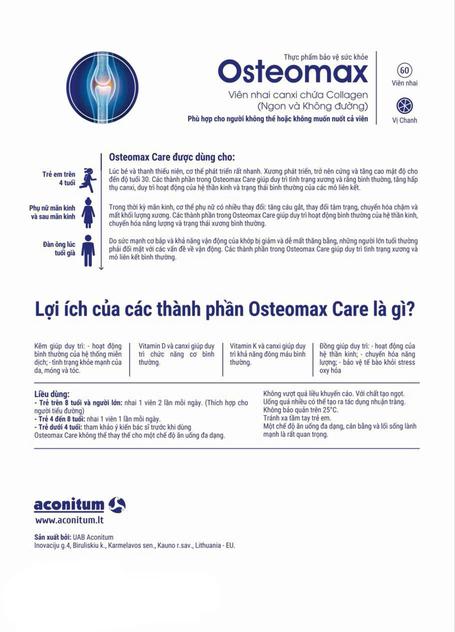 Lưu ý: Osteomax Care không thể thay thế cho một chế độ ăn uống đa dạng.