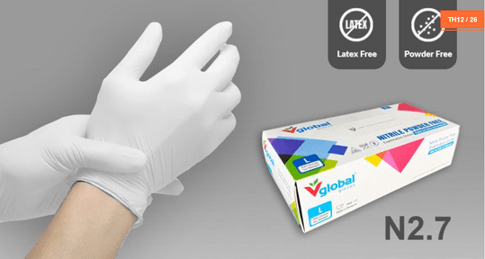 Găng tay nitrile Vglobal N2.7 được sản xuất theo các tiêu chuẩn quốc tế nghiêm ngặt, đảm bảo an toàn và chất lượng vượt trội.