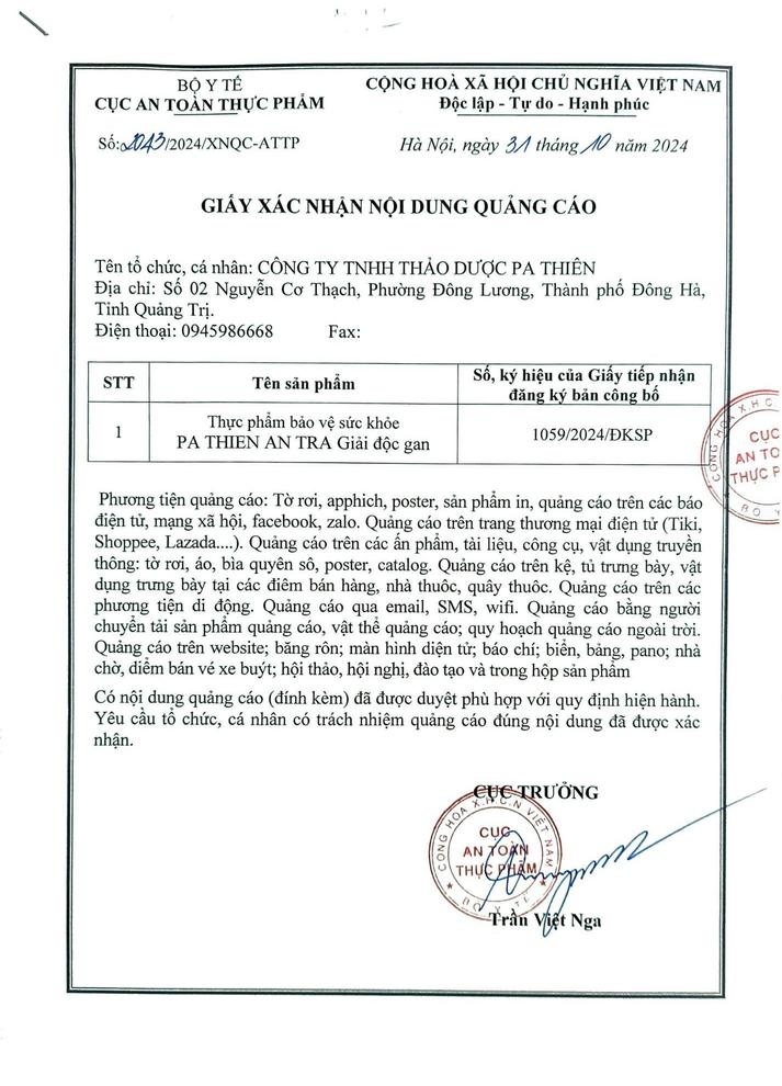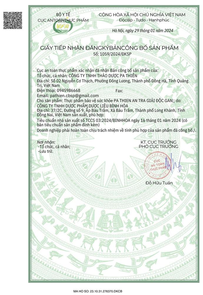 1059/2024/ĐKSP Cấp bởi Cục An toàn thực phẩm - BỘ Y TẾ