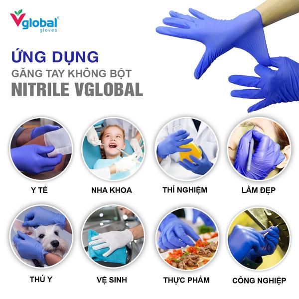 Combo 2 hộp màu xanh Găng tay kiểm tra Nitrile không bột VGLOBAL