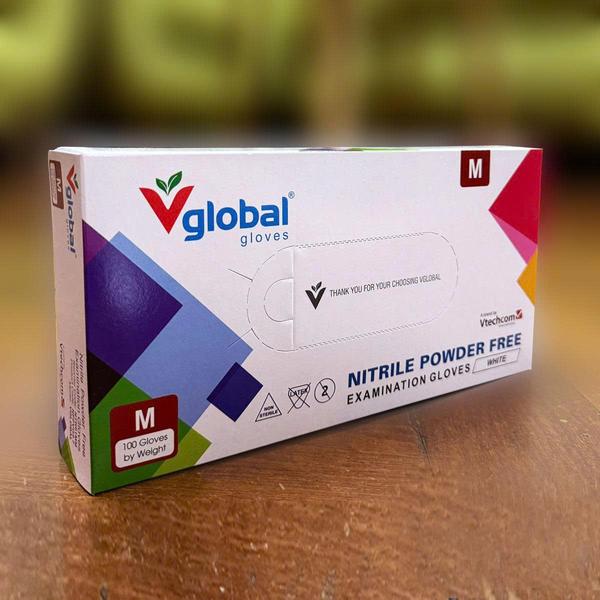 Combo 10 hộp màu trắng Găng tay kiểm tra Nitrile không bột VGLOBAL