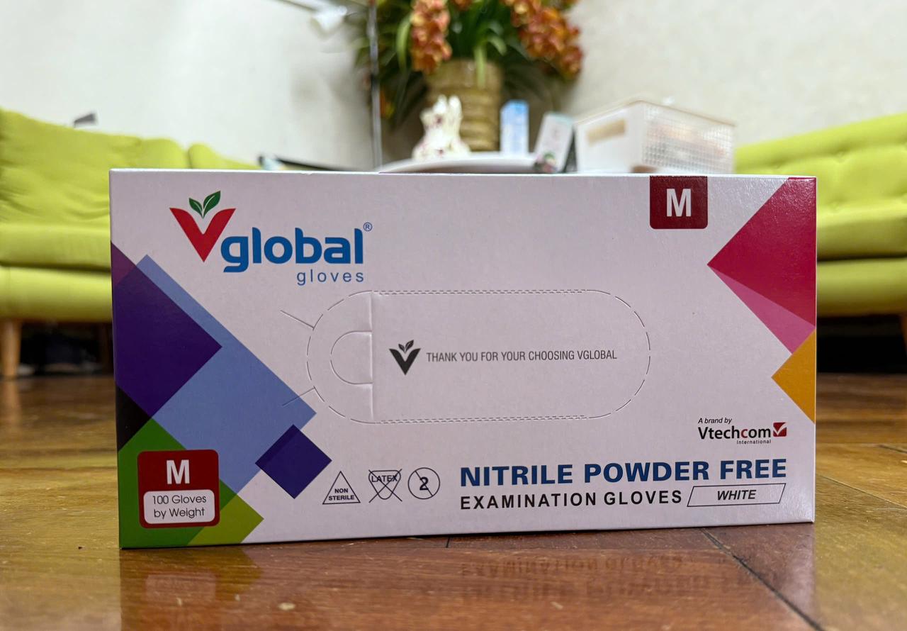 Combo 2 hộp màu trắng Găng tay kiểm tra Nitrile không bột VGLOBAL