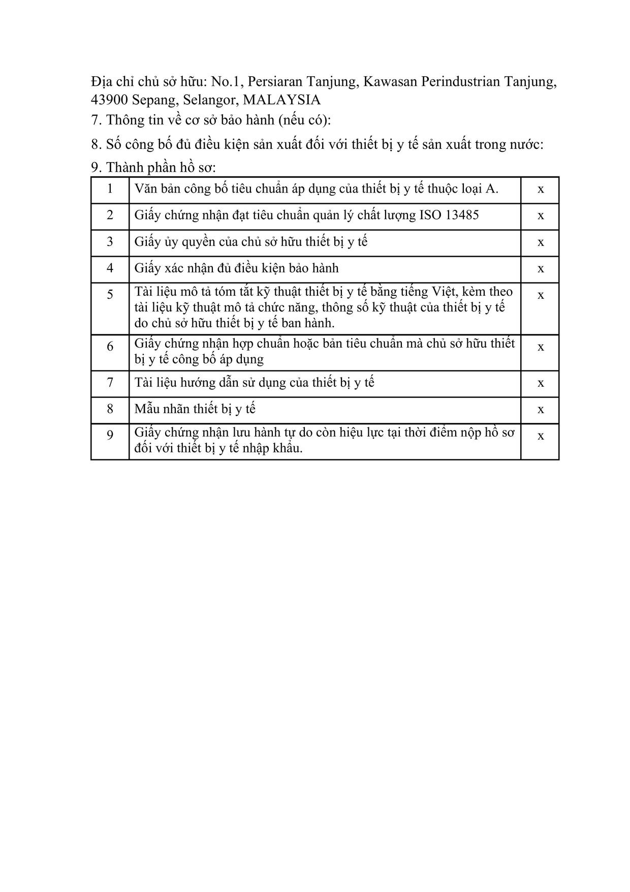 Thông tin công bố sản phẩm: Tuân thủ quy định về an toàn y tế và vệ sinh, phù hợp cho mọi ứng dụng chuyên nghiệp.