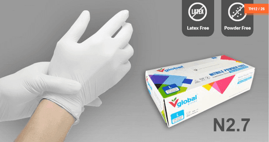 Găng tay nitrile Vglobal N2.7 được sản xuất theo các tiêu chuẩn quốc tế nghiêm ngặt, đảm bảo an toàn và chất lượng vượt trội.