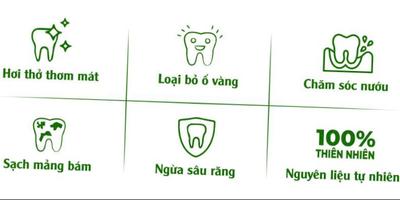 Công dụng: Loại bỏ ố vàng; Chăm sóc nướu; sạch mảng bám; ngừa sâu răng; hơi thở thơm mát.